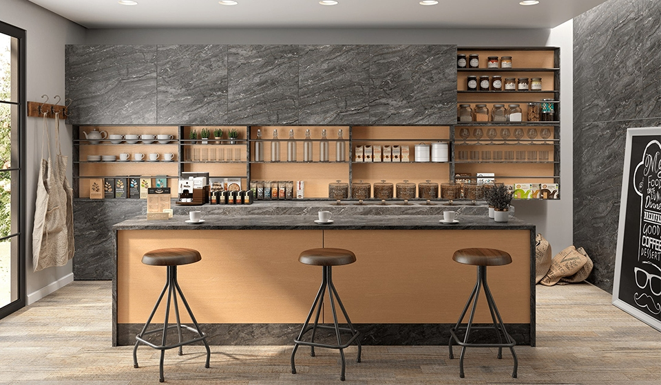 Com a popularização de ambientes integrados, como as cozinhas gourmet e salas de estar conjugadas, os padrões amadeirados se tornaram uma excelente escolha para conectar espaços de forma harmoniosa. Aplicados no mobiliário, pisos e painéis de parede, podem criar uma sensação de fluidez e conexão entre os cômodos, tornando-os visualmente atrativos e funcionais.